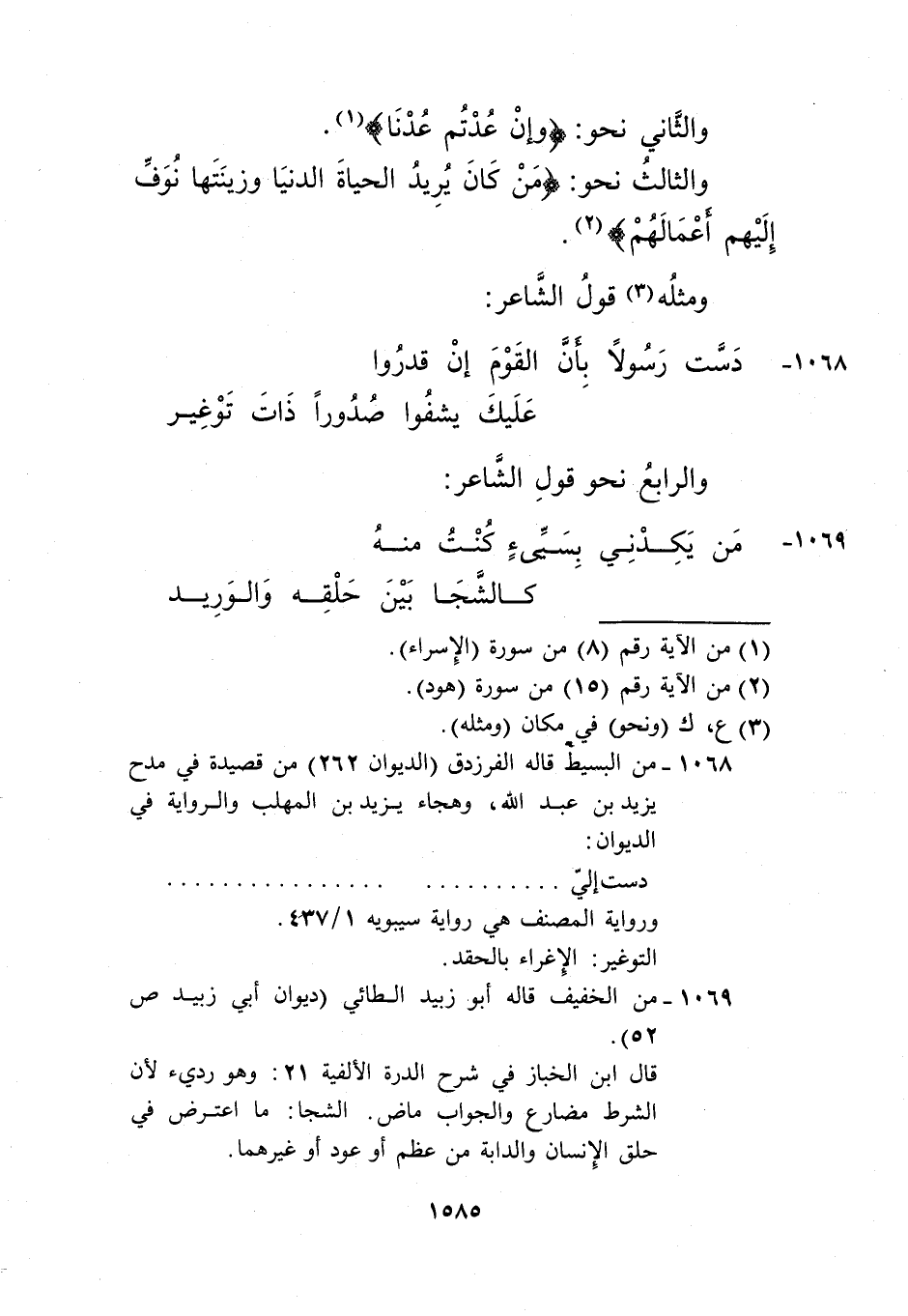 1068- من البسيط قاله الفرزدق "الديوان 262" من قصيدة في مدح يزيد بن عبد الله، وهجاء يزيد بن المهلب، والرواية في الديوان: