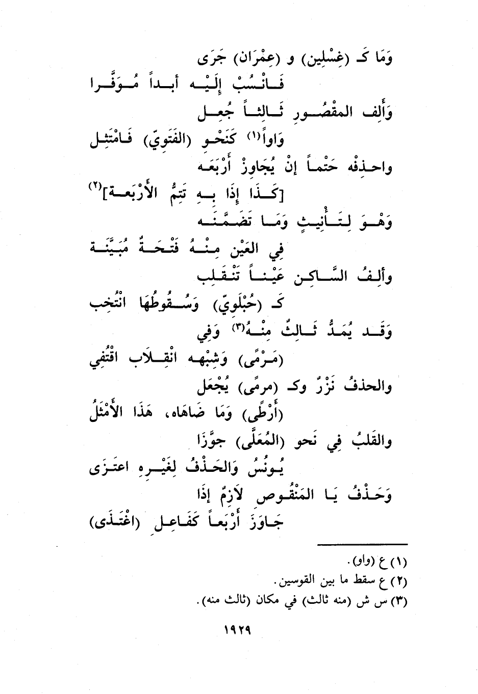 وما كـ"غسلين" و"عمران" جرى ... فانسب إليه أبدًا موفرًا