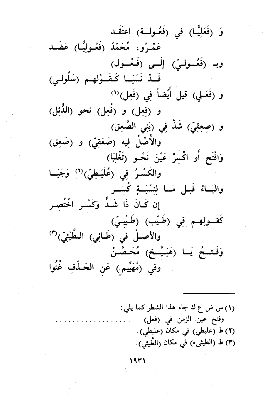 و"فعلي" قيل أيضًا في "فعل"1 ... و"فعل" و"فعل" نحو "الدئل"