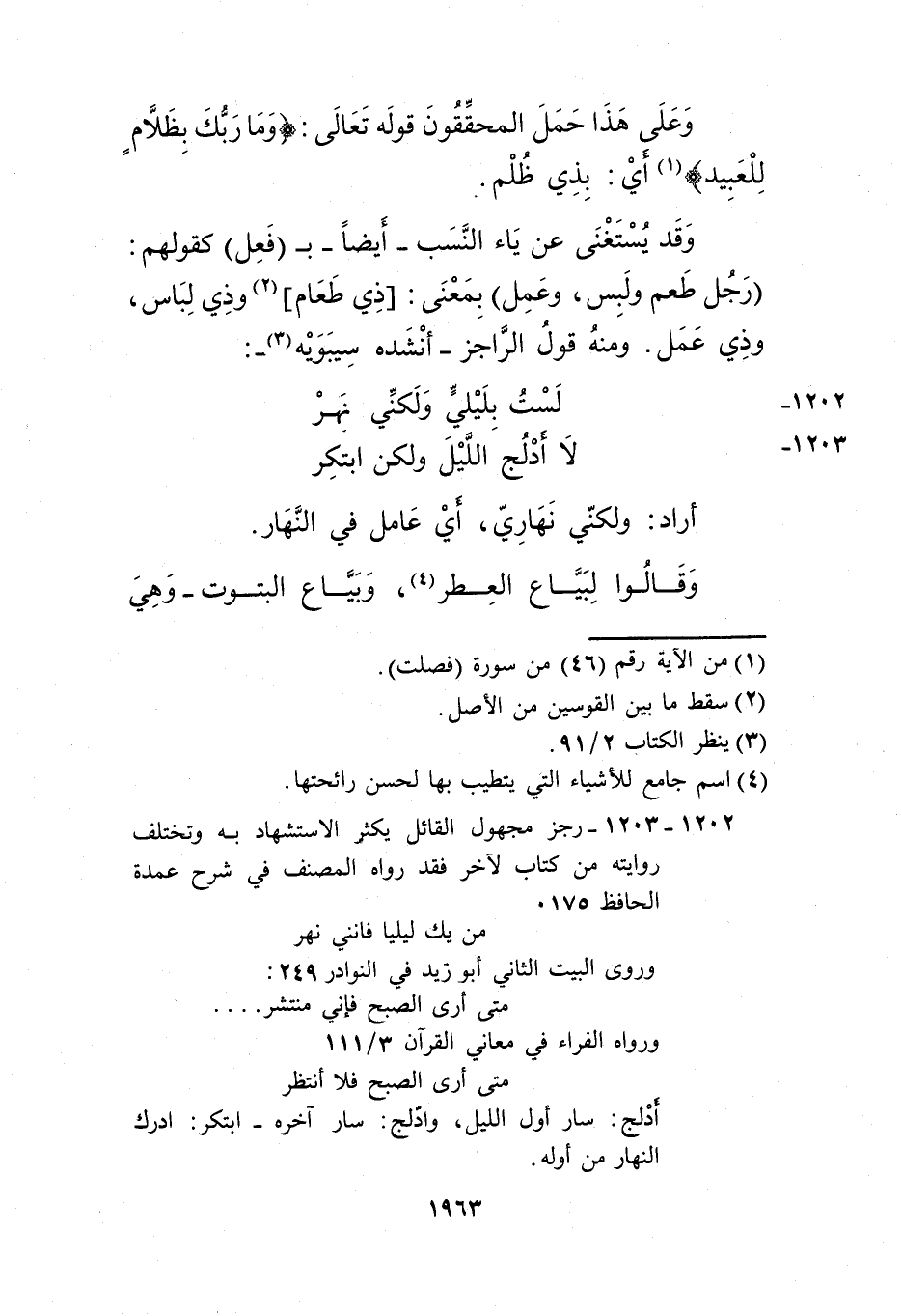 1202، 1203- رجز مجهول القائل يكثر الاستشهاد به وتختلف روايته من كتاب لآخر فقد رواه المصنف في شرح عمدة الحافظ 175.