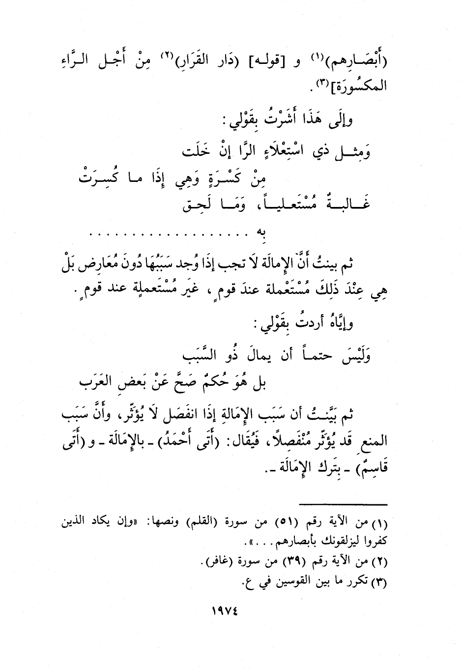 وليس حتمًا أن يمال ذو السبب ... بل هو حكم صح عن بعض العرب