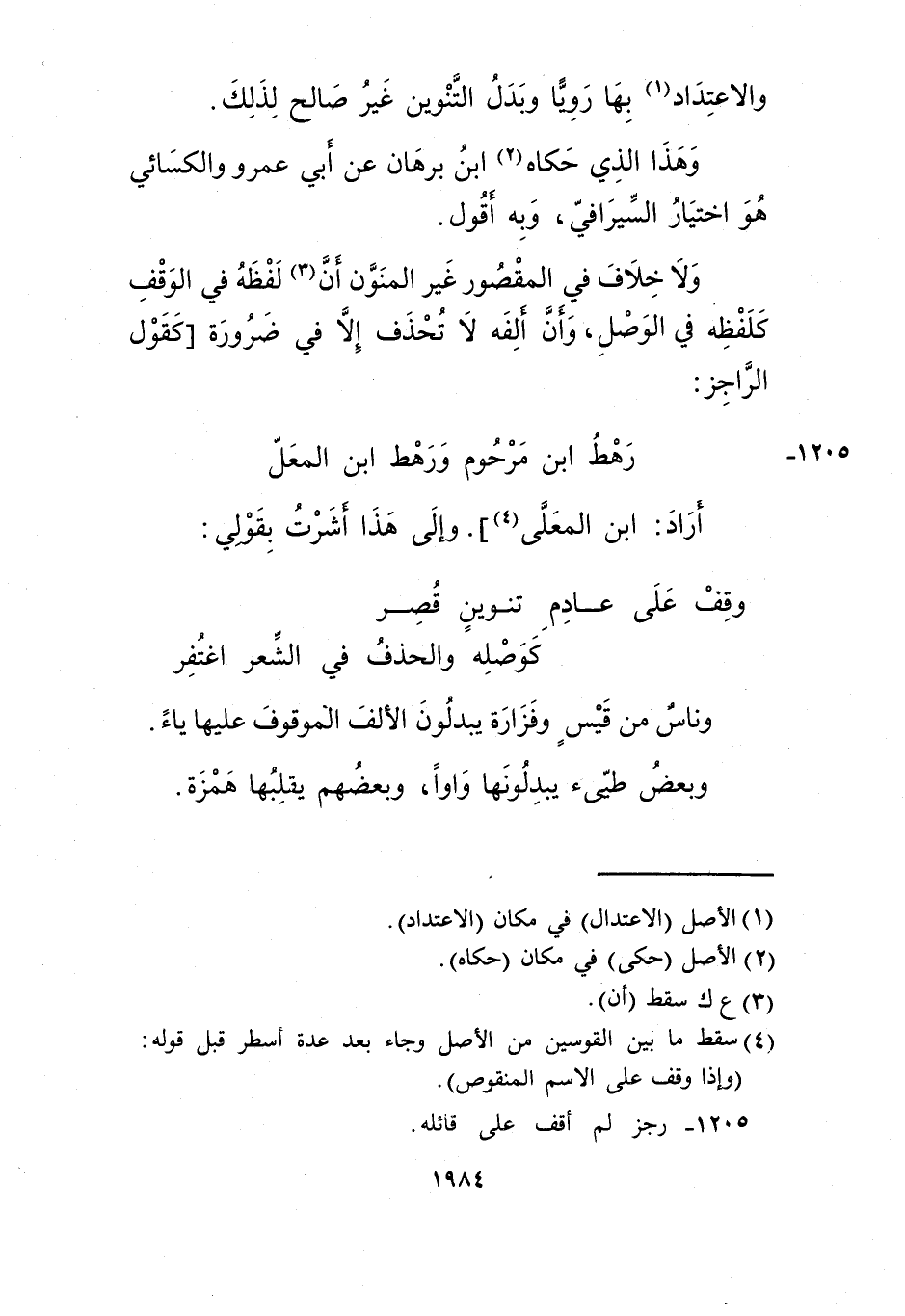 4 سقط ما بين القوسين من الأصل وجاء بعد عدة أسطر قبل قوله: "وإذا وقف على الاسم المنقوص".