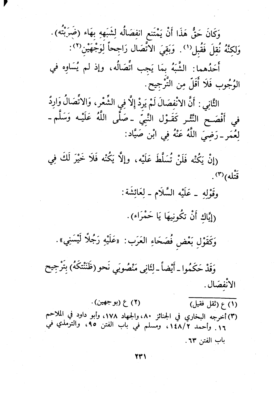 الثاني: أن الانفصال لم يرد إلا في الشعر، والاتصال وارد في أفصح النثر كقول النبي -صلى الله عليه وسلم- لعمر -رضي الله عنه في ابن صياد: