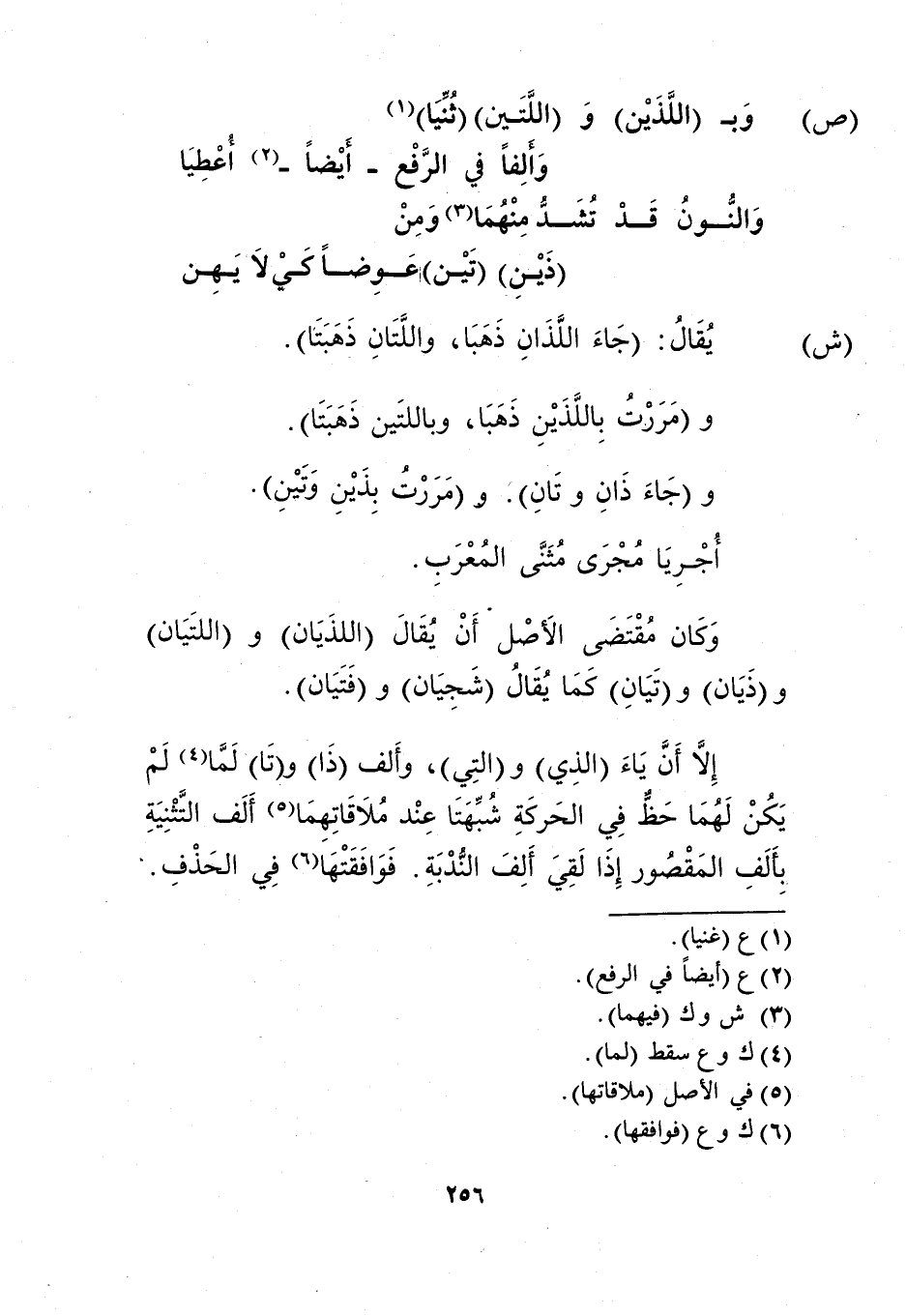 إلا أن ياء "الذي" و"التي"، وألف "ذا" و"تا" لما4 لم يكن لهما حظ في الحركة شبهتا عند ملاقاتهما5 الف التثنية بألف المقصور إذا لقي ألف الندبة. فوافقتها6 ففي الحذف.