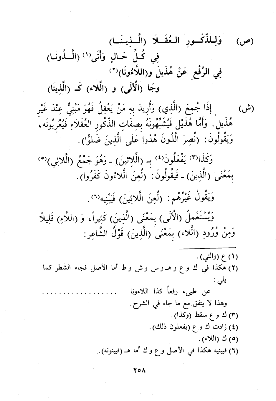 "ش": إذا جمع "الذي" وأريد به من يعقل فهو مبني عند غير هذيل. وأما هذيل فيشبهونه بصفات الذكور العقلاء فيعربونه، ويقولون: "نصر الذون هدوا على الذين ضلوا".