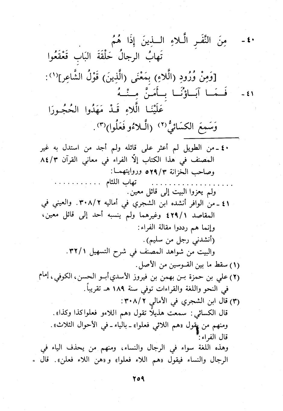 41- من الوافر أنشده ابن الشجري في أماليه 2/ 308. والعيني في المقاصد 1/ 429 وغيرهما ولم ينسبه أحد إلى قائل معين، وإنما هم رددوا مقالة الفراء: