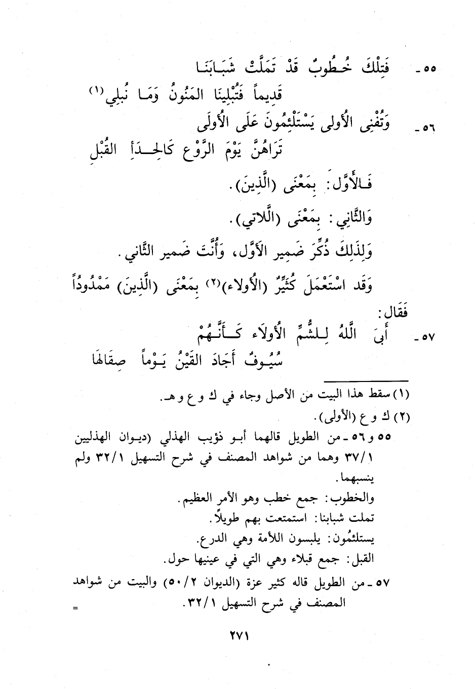 55 و 56- من الطويل قالها أبو ذؤيب الهذلي "ديوان الهذليين 1/ 37 وهما من شواهد المصنف في شرح التسهيل 1/ 32 ولم ينسبهما.