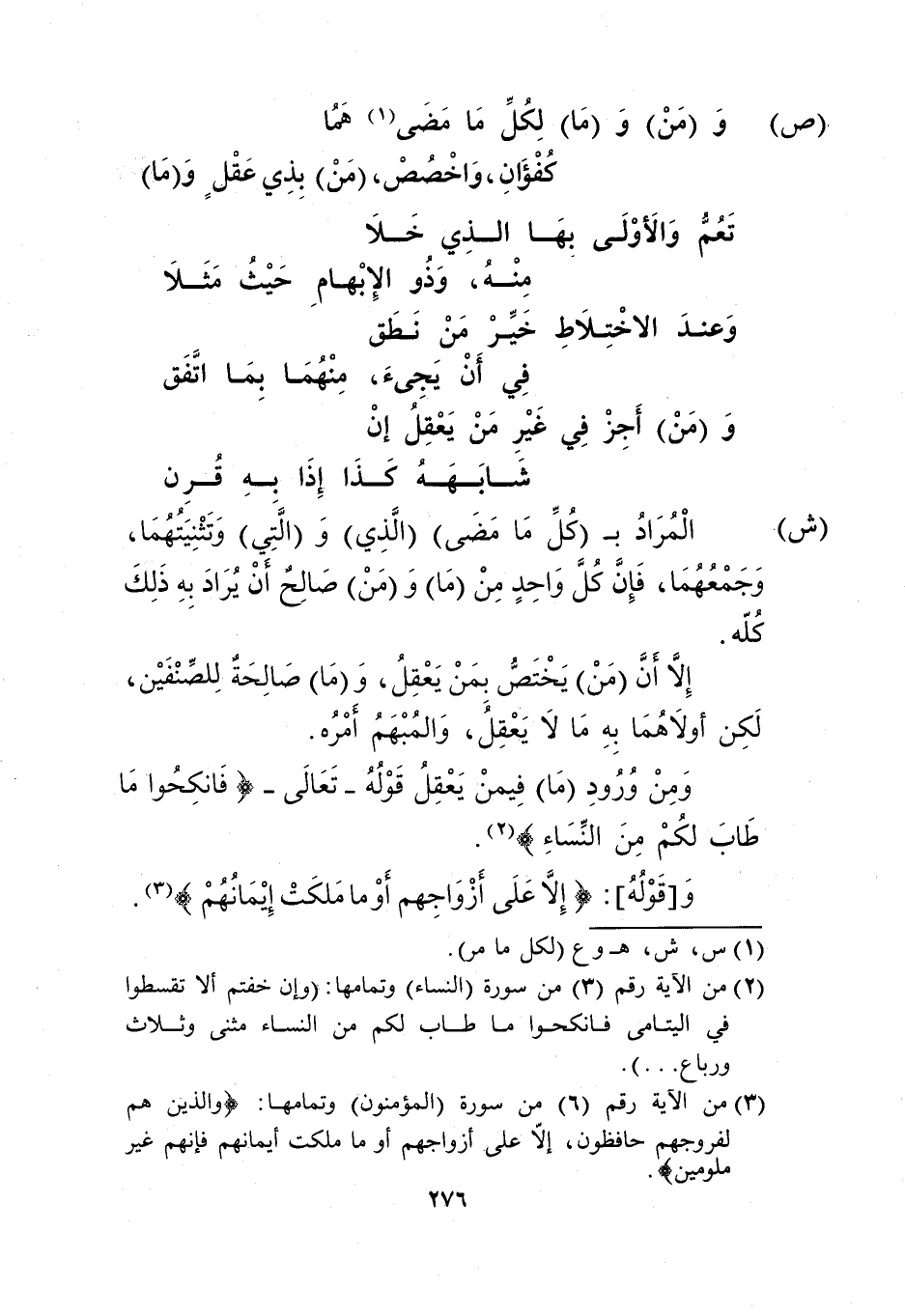"ش" المراد بـ"كل ما مضى" "الذي" و"التي" وتثنيتهما، وجمعهما، فإن كل واحد من "ما" و"من" صالح أن يراد به ذلك كله.