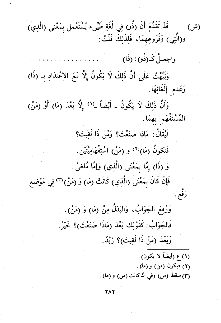 "ش": قد تقدم أن "ذو" في لغة طيئ يستعمل بمعنى "الذي" و"التي" وفروعهما، فلذلك قلت: