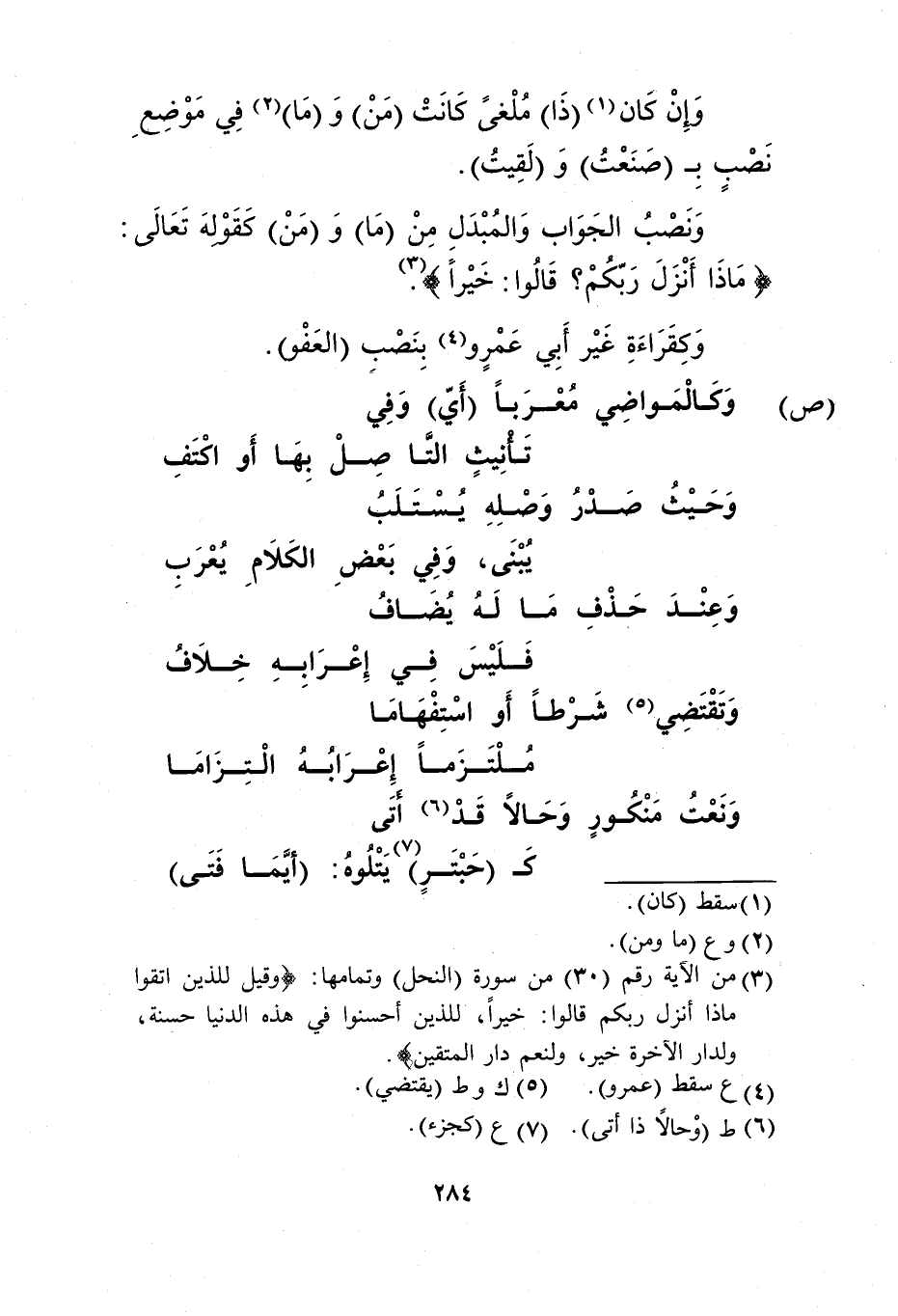 ونصب الجواب والمبدل من "ما" و"من" كقوله تعالى:
