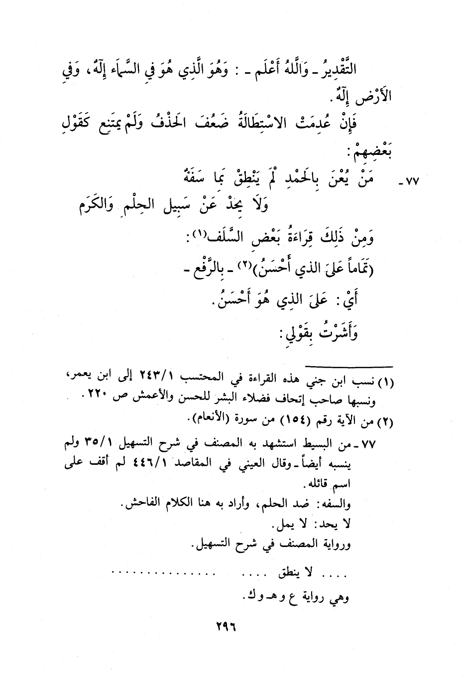 77- من البسيط استشهد به المصنف في شرح التسهيل 1/ 35، ولم ينسبه أيضًا -وقال العيني في المقاصد 1/ 446: لم أقف على اسم قائله.