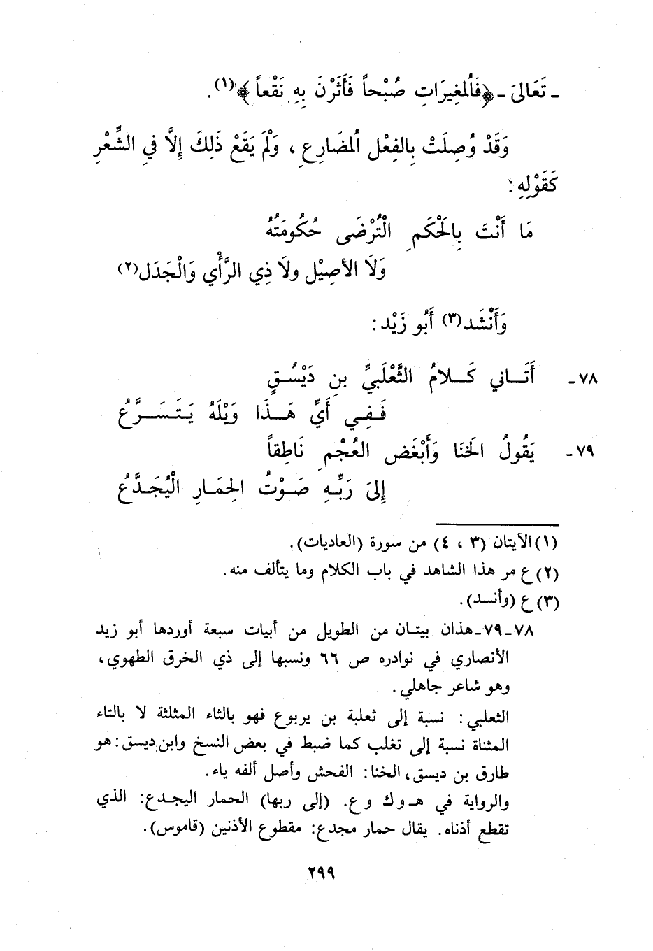 78- 79- هذان بيتان من الطويل من أبيات سبعة ِأوردها أبو زيد الأنصاري في نوادره ص 66، ونسبها إلى ذي الخرق الطهوي، وهو شاعر جاهلي.