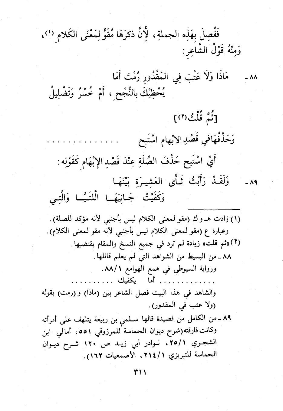 88- من البسيط من الشواهد التي لم يعلم قائلها.