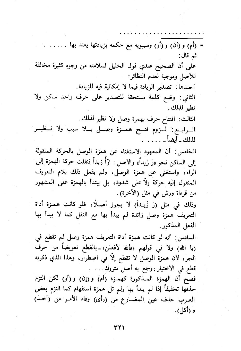 فصح أن الهمزة المذكورة كهمزة "أم" و"إن" و"أو" لكن التزم حذفها تخفيفًا إذا لم يبدأ بها، ولم تل همزة استفهام كما التزم بعض العرب حذف عين المضارع من "رأي" وفاء الأمر من "أخذ" و"أكل".