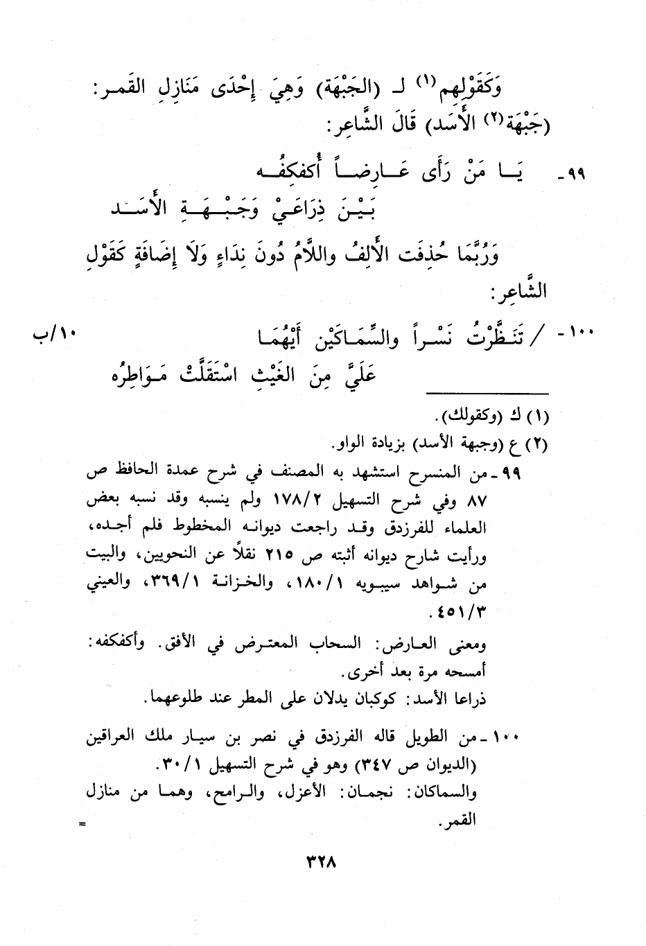 وكقولهم1 لـ"الجبهة" وهي إحدى منازل القمر: "جبهة2 الأسد"، قال الشاعر:
