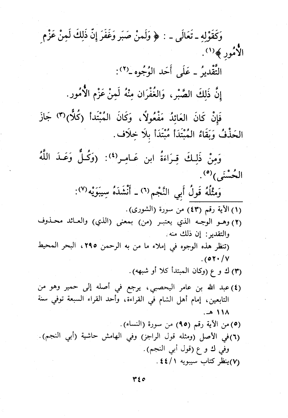 "تنظر هذه الوجوه في إملاء ما من به الرحمن 295، البحر المحيط 7/ 520".