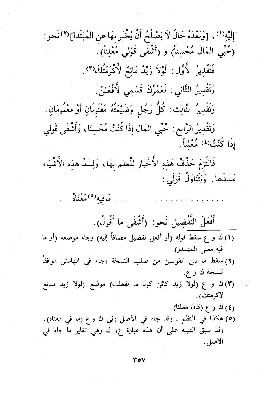 1 ك وع سقط قوله "أو أفعل تفضيل مضافًا ِإليه"، وجاء موضعه "أو ما فيه معنى المصدر".