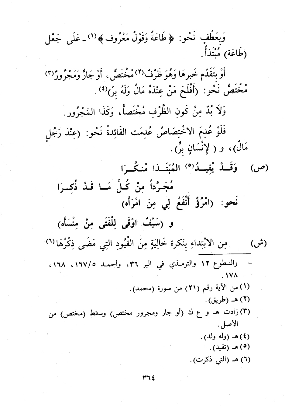 "ش": من الابتداء بنكرة خالية من القيود التي مضى ذكرها6