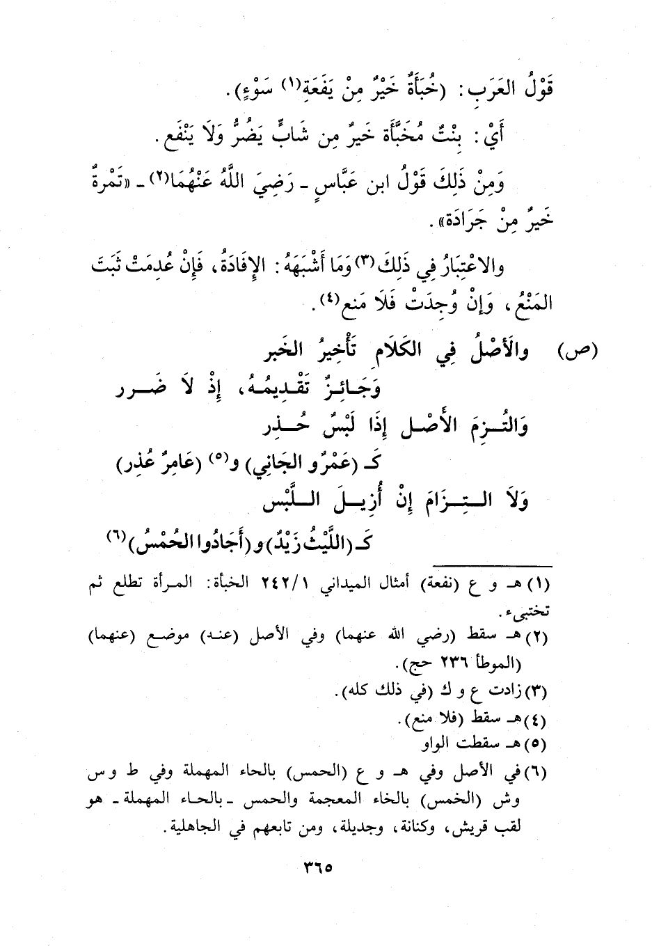 6 في الأصل وفي هـ وع "الحمس" بالحاء المهملة وفي طـ وس وش "الخمس" بالخاء المعجمة والحمس -بالحاء المهملة- هو لقب قريش، وكنانة، وجديلة، ومن تابعهم في الجاهلية.