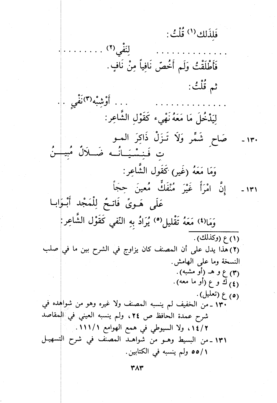 130- من الخفيف لم ينسبه المصنف ولا غيره وهو من شاهده في شرح عمدة الحافظ ص 24، ولم ينسبه العيني في المقاصد 2/ 14، ولا السيوطي في همع الهوامع 1/ 111.