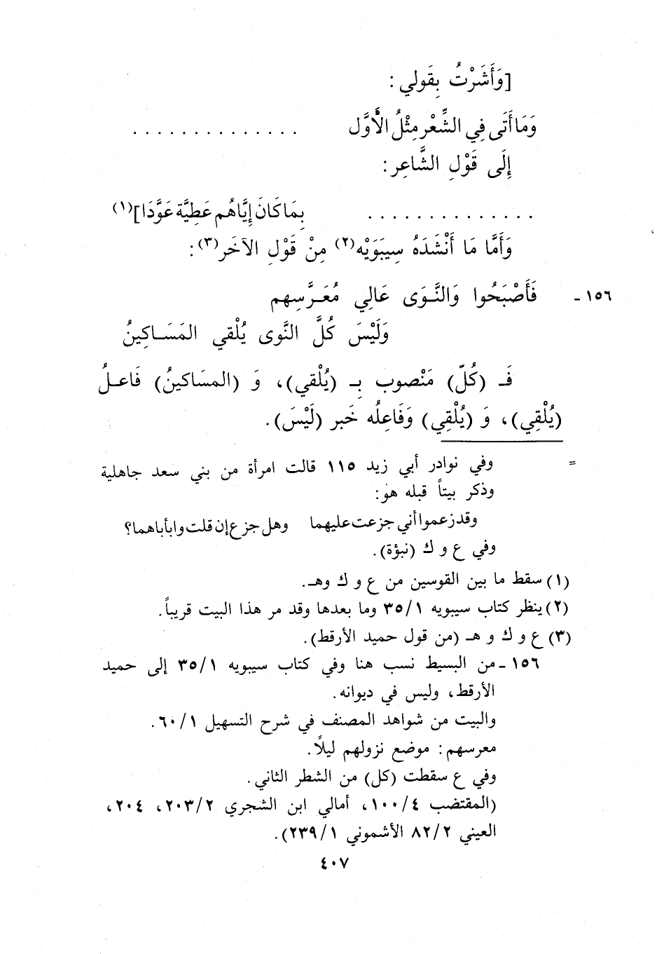 "المقتضب 4/ 100، أمالي ابن الشجري 2/ 203، 204، العيني 2/ 82 الأشموني 1/ 239".