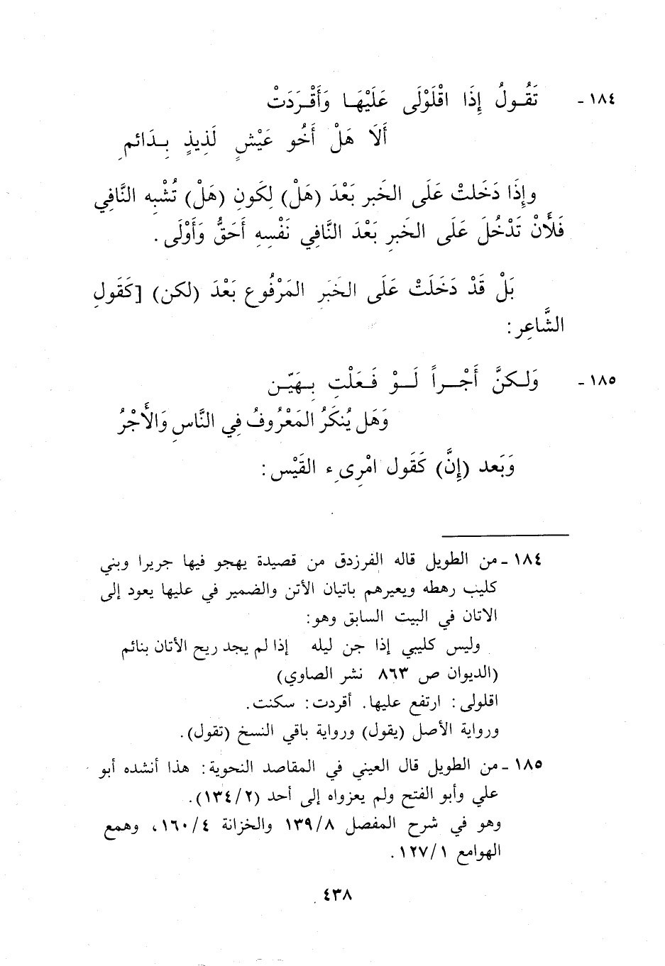 185- من الطويل قال العيني في المقاصد النحوية، هذا أنشده أبو علي وأبو الفتح ولم يعزواه إلى أحد "2/ 134".
