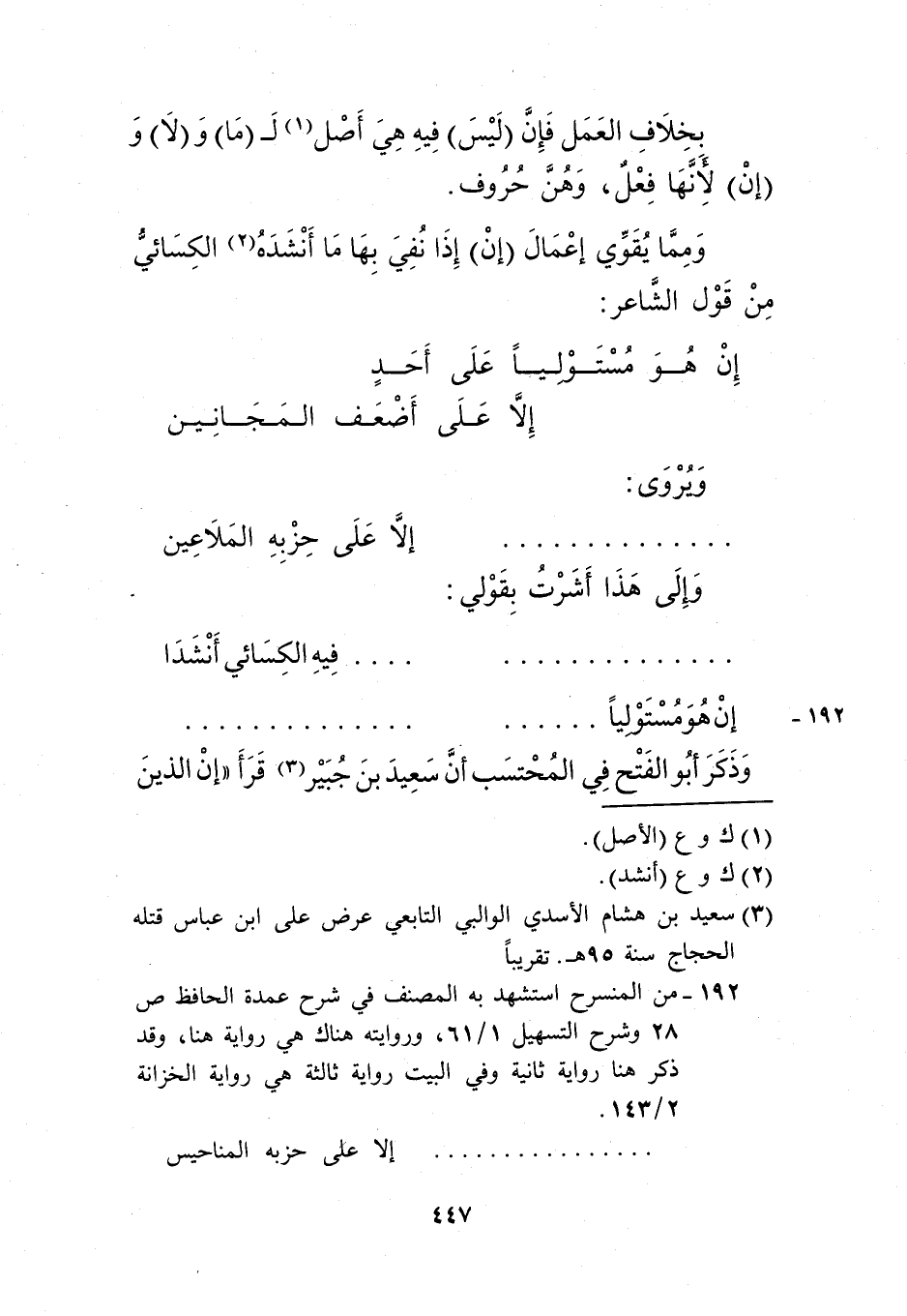 192- من المنسرح اشتهد به المصنف في شرح عمدة الحافظ ص 28 وشرح التسهيل 1/ 61، وروايته هناك هي رواية هنا، وقد ذكر هنا رواية ثانية وفي البيت رواية ثالثة هي رواية الخزانة 2/ 143.