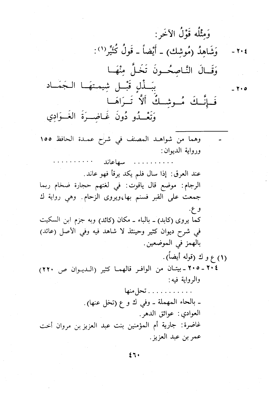 204- 205- بيتان من الوافر قالهما كثير "الديوان ص 220"