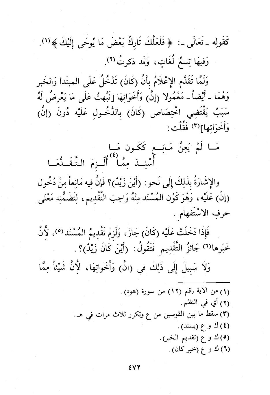 فإذا دخلت عليه "كان" جاز، ولزم تقديم المسند5، لأن خبرها6 جائز التقديم فتقول: "أين كان زيد"؟