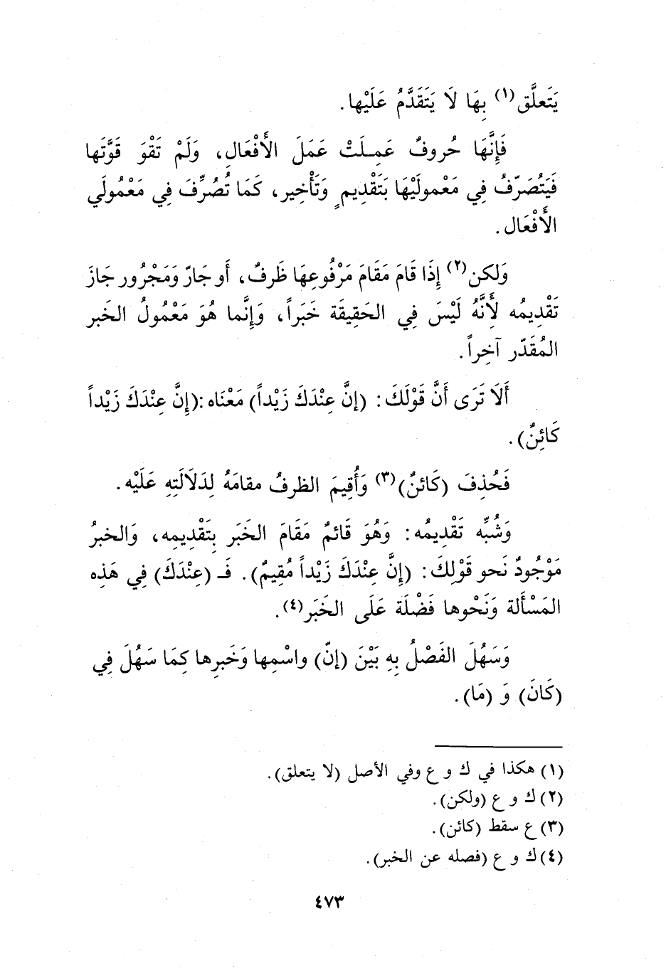 ألا ترى أن قولك: "إن عندك زيدًا" معناه: "إن عندك زيدًا كائن".