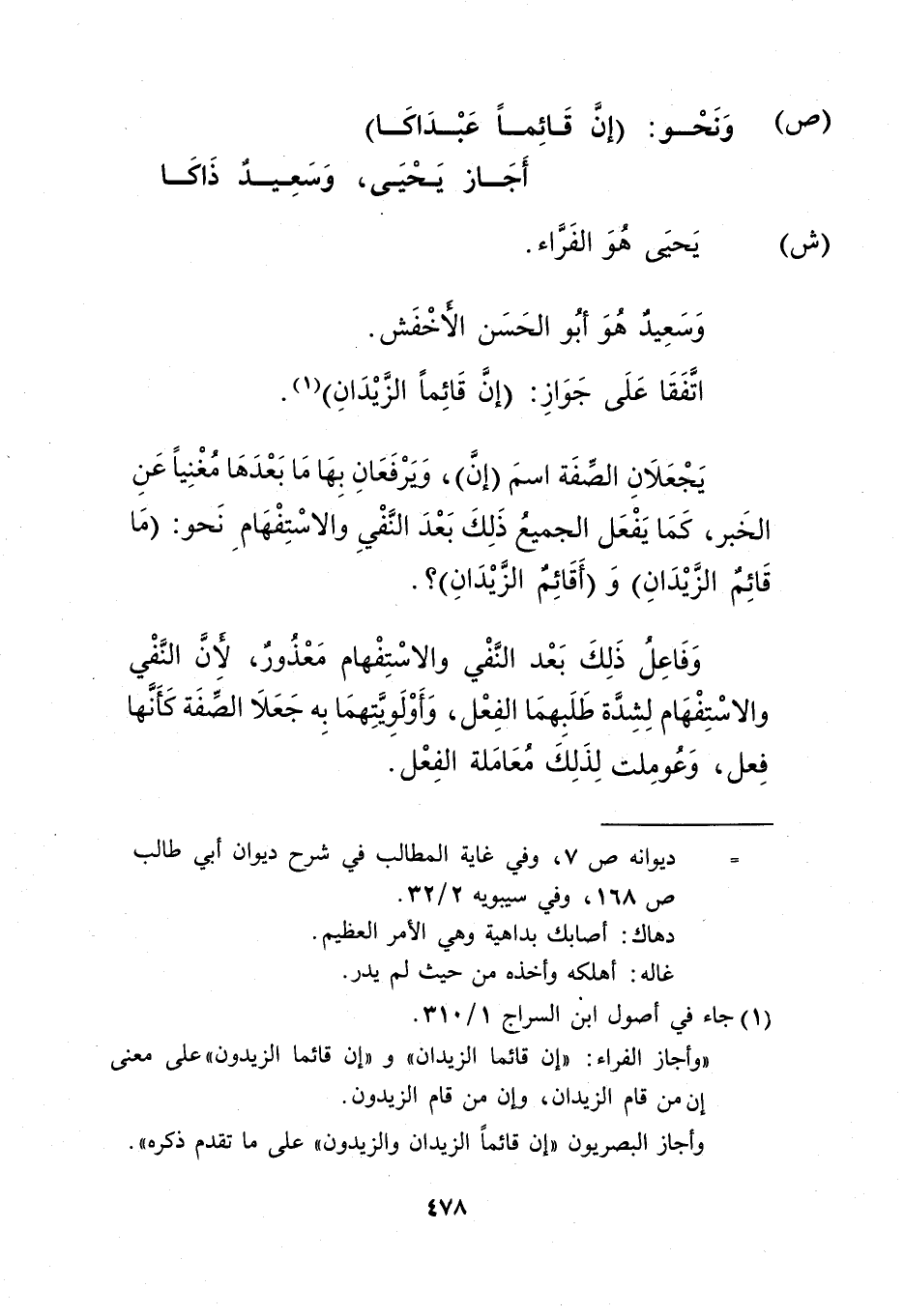 ونحو: "إن قائمًا عبداكا" ... أجاز يحيى، وسعيد ذاكا