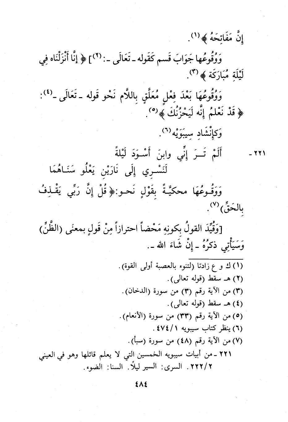 221- من أبيات سيبويه الخمسين التي لا يعلم قائلها وهو في العيني 2/ 222. السرى: السير ليلًا. السنا: الضوء.