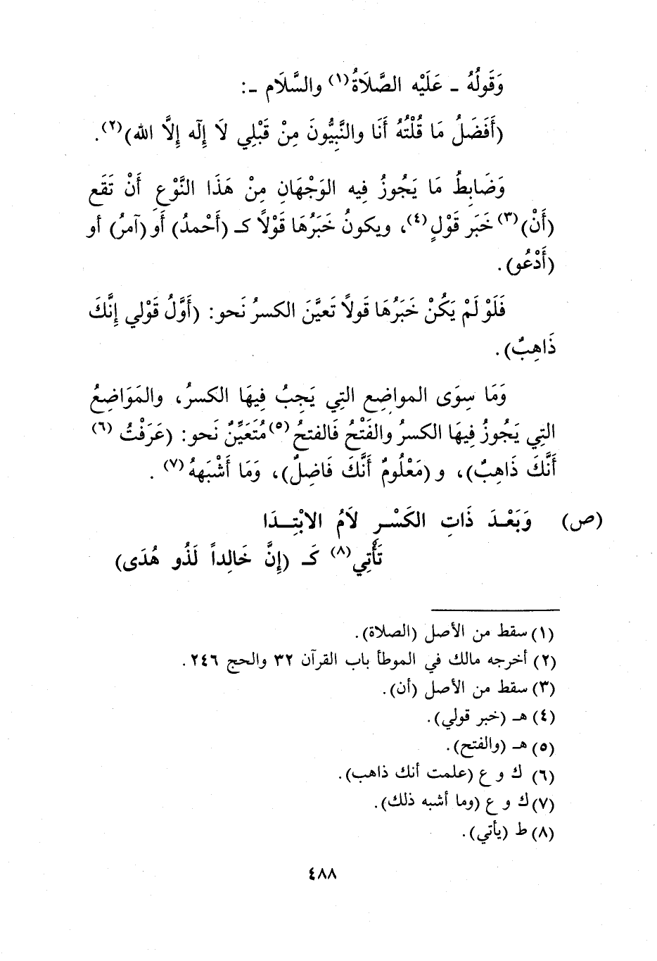 وما سوى المواضع التي يجب فيها الكسر، والمواضع التي يجوز فيها الكسر والفتح فالفتح5 متعين نحو: "عرفت6 أنك ذاهب"، و"معلوم أنك فاضل" وما أشبهه7.