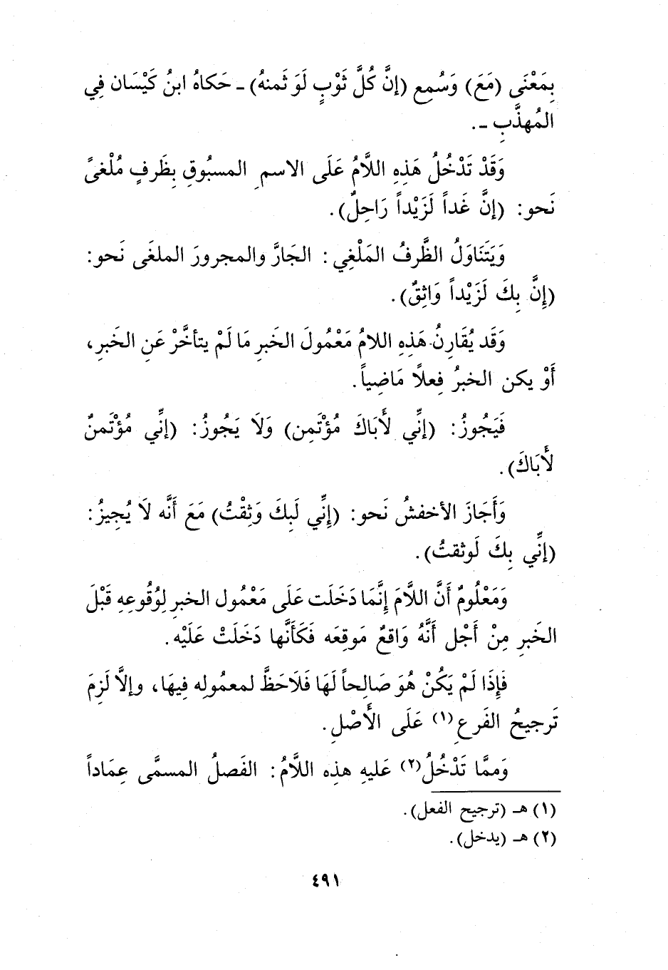 وقد يقارن هذه اللام معمول الخبر ما لم يتأخر عن الخبر، أو يكن الخبر فعلًا ماضيًا.