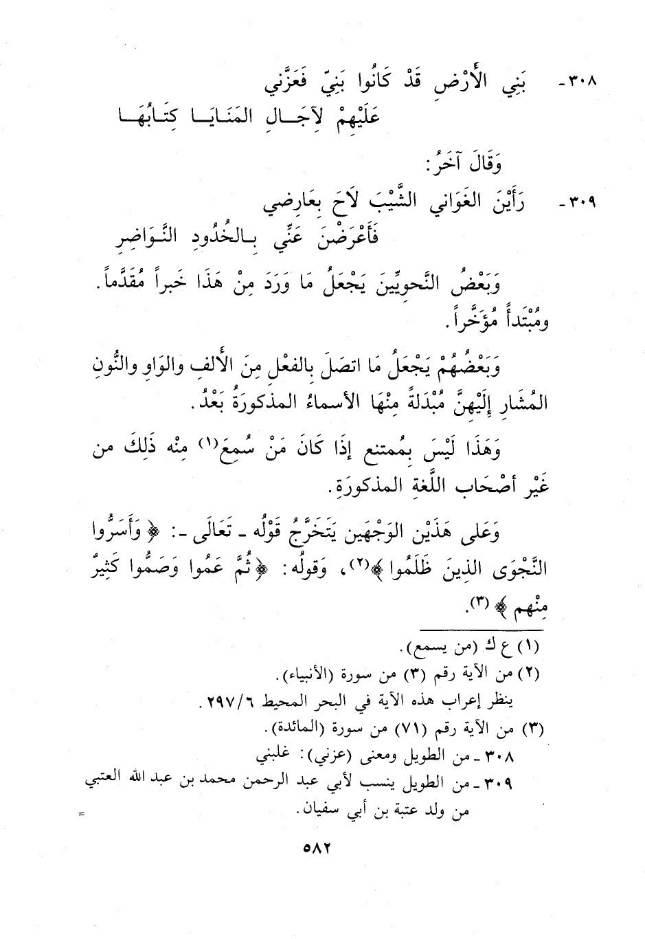 309- من الطويل ينسب لأبي عبد الرحمن محمد بن عبد الله بن عبد الله العتبي من ولد عتبة بن أبي سفيان.