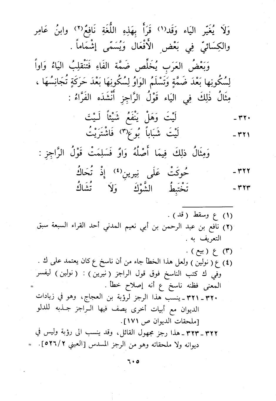 وفي ك كتب الناسخ فوق قول الراجز "نيرن": "نولين" ليفسر المعنى فظنه ناسخ ع أنه إصلاح خطأ.