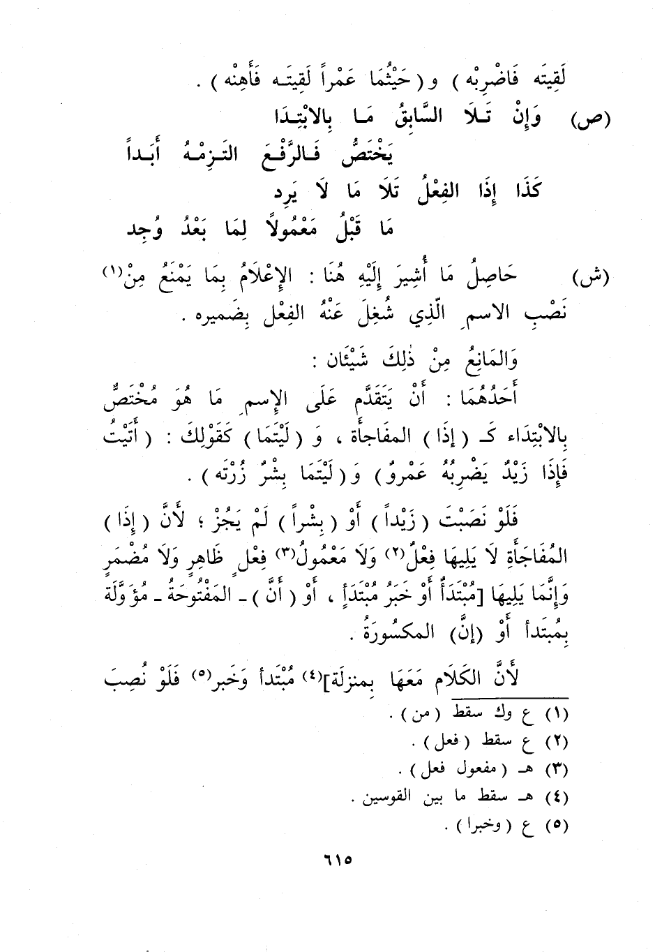"ش": حاصل ما أشير إليه هنا: الإعلام بما يمنع من1 نصب الاسم الذي شغل عنه الفعل بضميره.