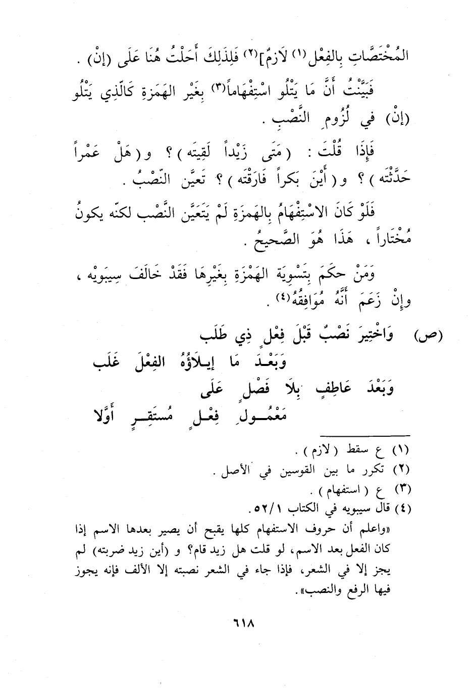 "واعلم أن حروف الاستفهام كلها يقبح أن يصير بعدها الاسم إذا كان الفعل بعد الاسم، لو قلت هل زيد قام؟ و"أين زيد ضربته" لم يجز إلا في الشعر، فإذا جاء في الشعر نصبته إلا الألف فإنه يجوز فيها الرفع والنصب".