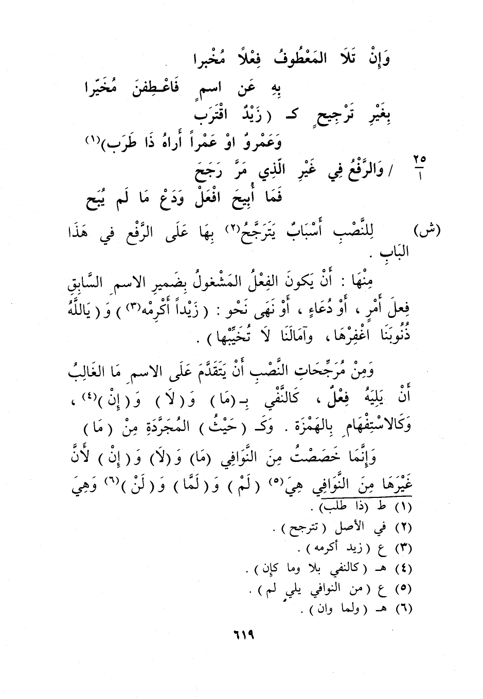 "ش": للنصب أسباب يترجح2 بها على الرفع في هذا الباب.