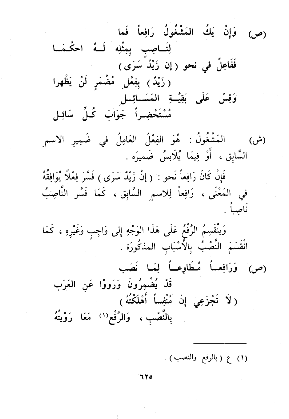 "ش": المشغول: هو الفعل العامل في ضمير السابق، أو فيما يلابس ضميره.