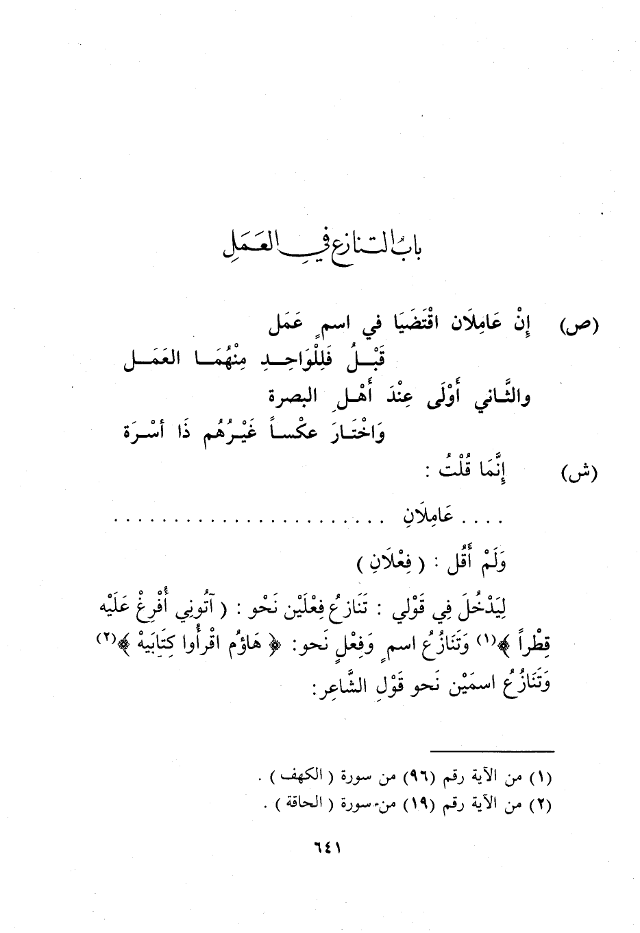 ليدخل في قولي: "تنازع فعلين نحو: {آتُونِي أُفْرِغْ عَلَيْهِ قِطْرًا} 1، وتنازع اسم وفعل نحو: {هَاؤُمُ اقْرَأوا كِتَابِيَهْ} 2، وتنازع اسمين نحو قول الشاعر.