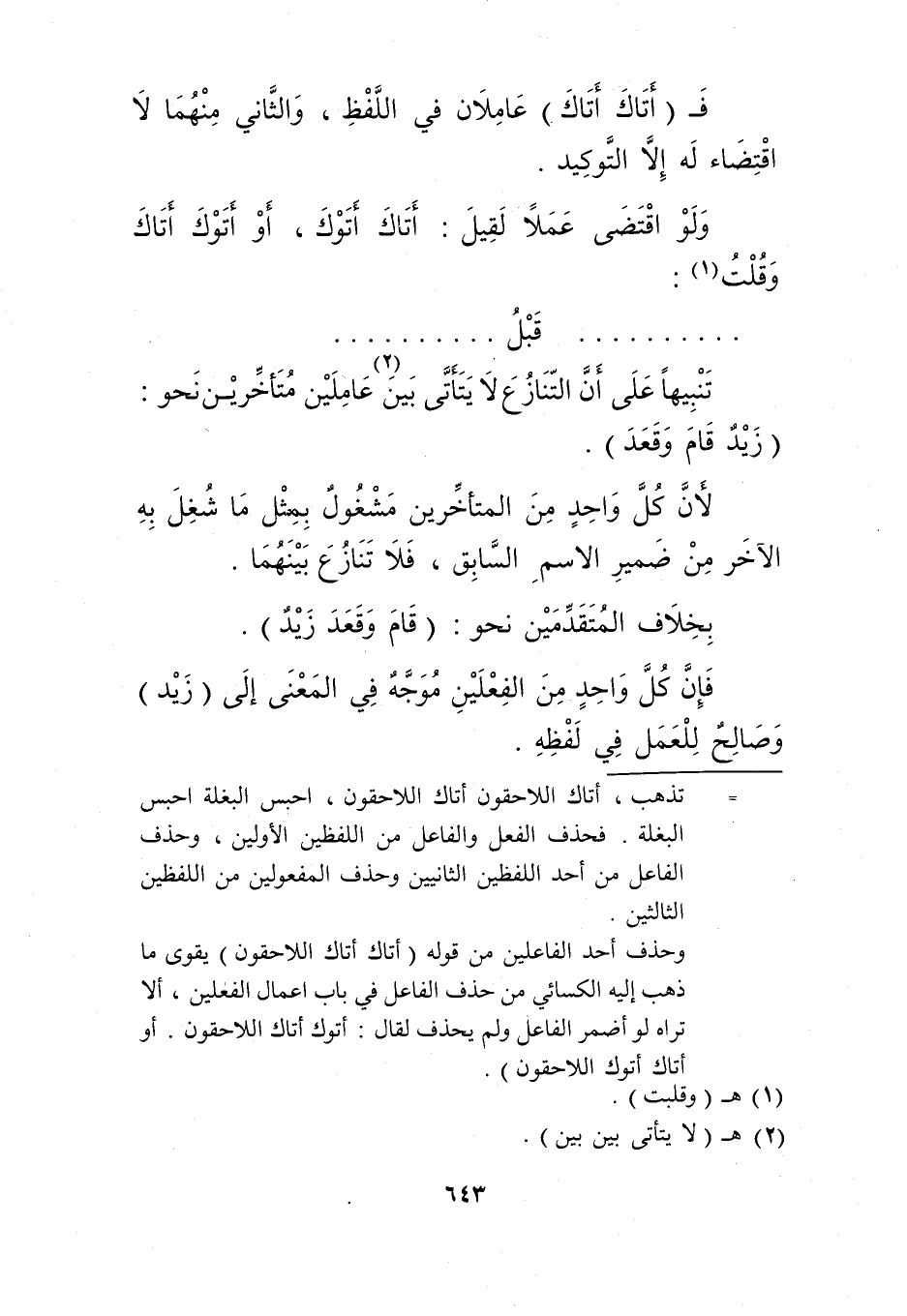 تنبيها على أن التنازع لا يتأتى بين2 عاملين متأخرين نحو: "زيد قام وقعد".