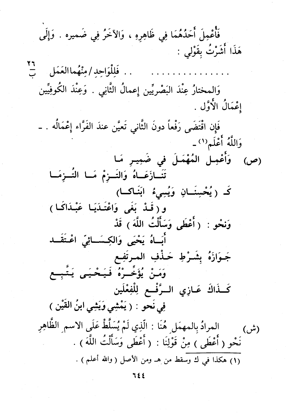 "ش": المراد بالمهمل هنا: الذي لم يسلط على الاسم الظاهر نحو "أعطى" من قولنا: "أعطى وسألت الله".