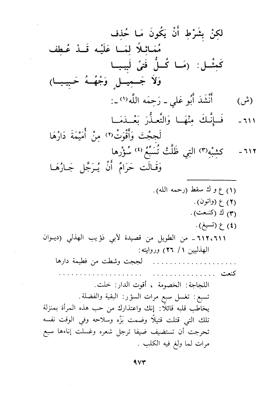 611، 612- من الطويل من قصيدة لأبي ذؤيب الهذلي "ديوان الهذليين 1/ 26" وروايته: