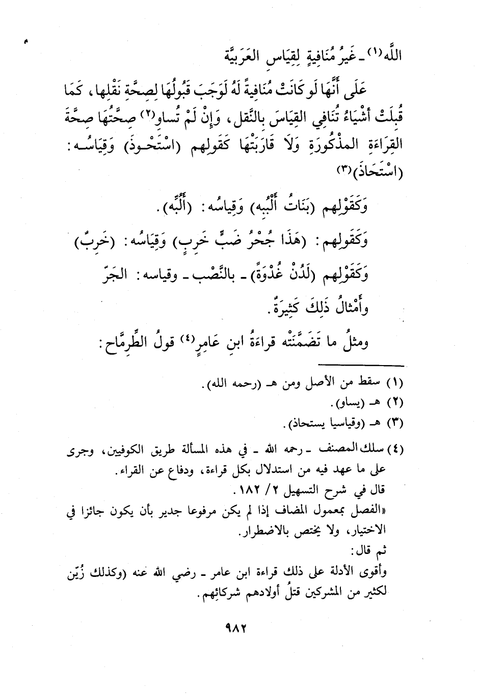 على أنها لو كانت منافية له لوجب قبولها لصحة نقلها، كما قبلت أشياء تنافي القياس بالنقل، وإن لم تساو2 صحتها صحة القراءة المذكورة ولا قاربتها كقولهم: "استحوذ" وقياسه: "استحاذ"3.