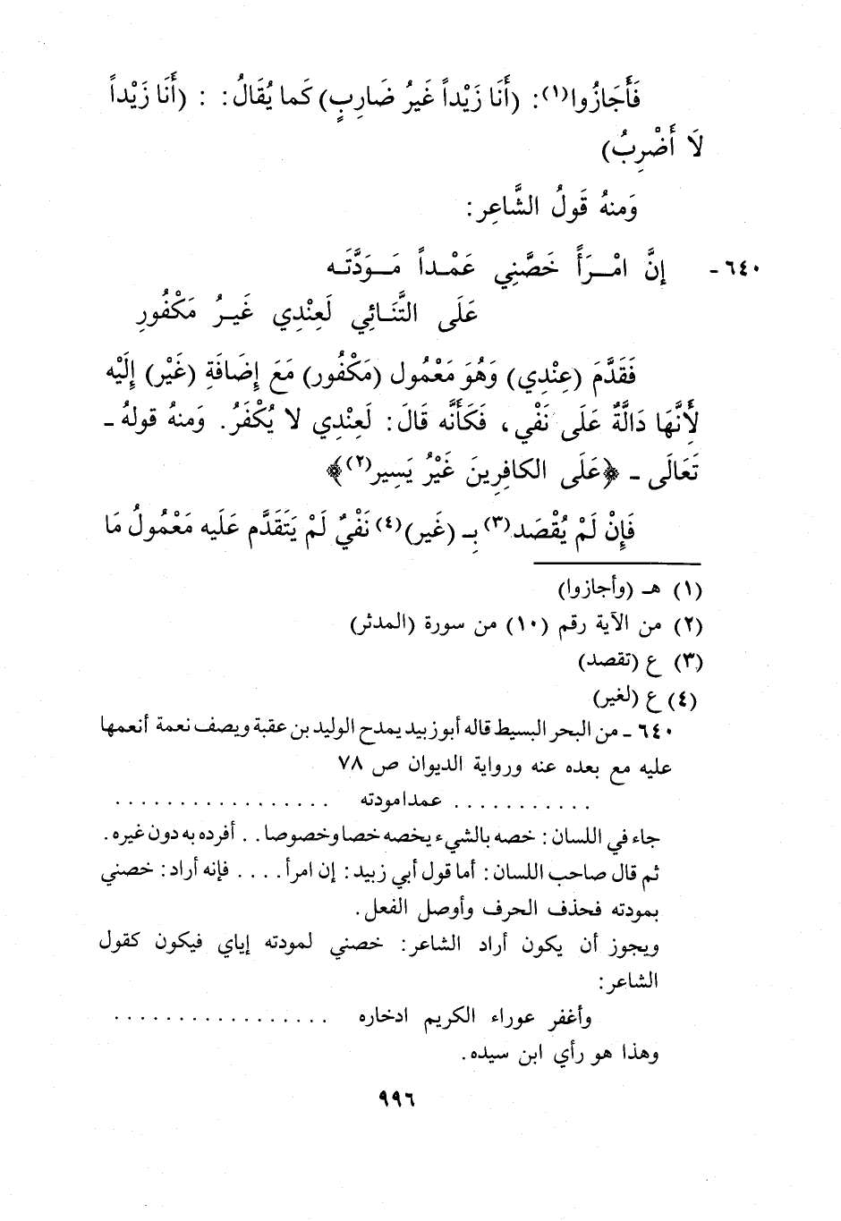 ثم قال صاحب اللسان: أما قول أبي زبيد: إن امرأ..... فإنه أراد: خصني بمودته فحذف الحرف وأوصل الفعل.