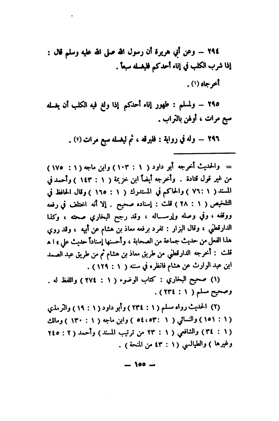 2 الحديث رواه مسلم (1: 234) وأبو داود (1: 19) والترمذي (1: 151) والنسائي (1: 53,54) وابن ماجه (1: 130) ومالك (1: 34) والشافعي (1: 23) من ترتيب المسند، وأحمد (2: 245) وغيرها، والطيالسي (1: 43) من المنحة.