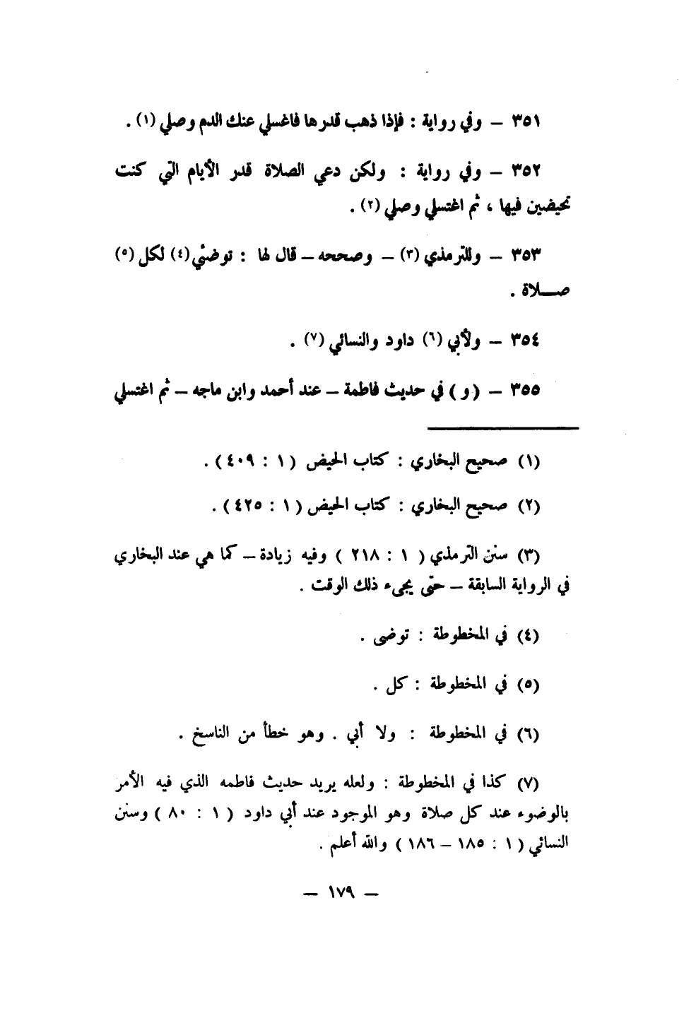 352 - وفي رواية: (ولكن دعي الصلاة قدر الأيام التي كنت تحيضين فيها، ثم اغتسلي وصلي) 2.
