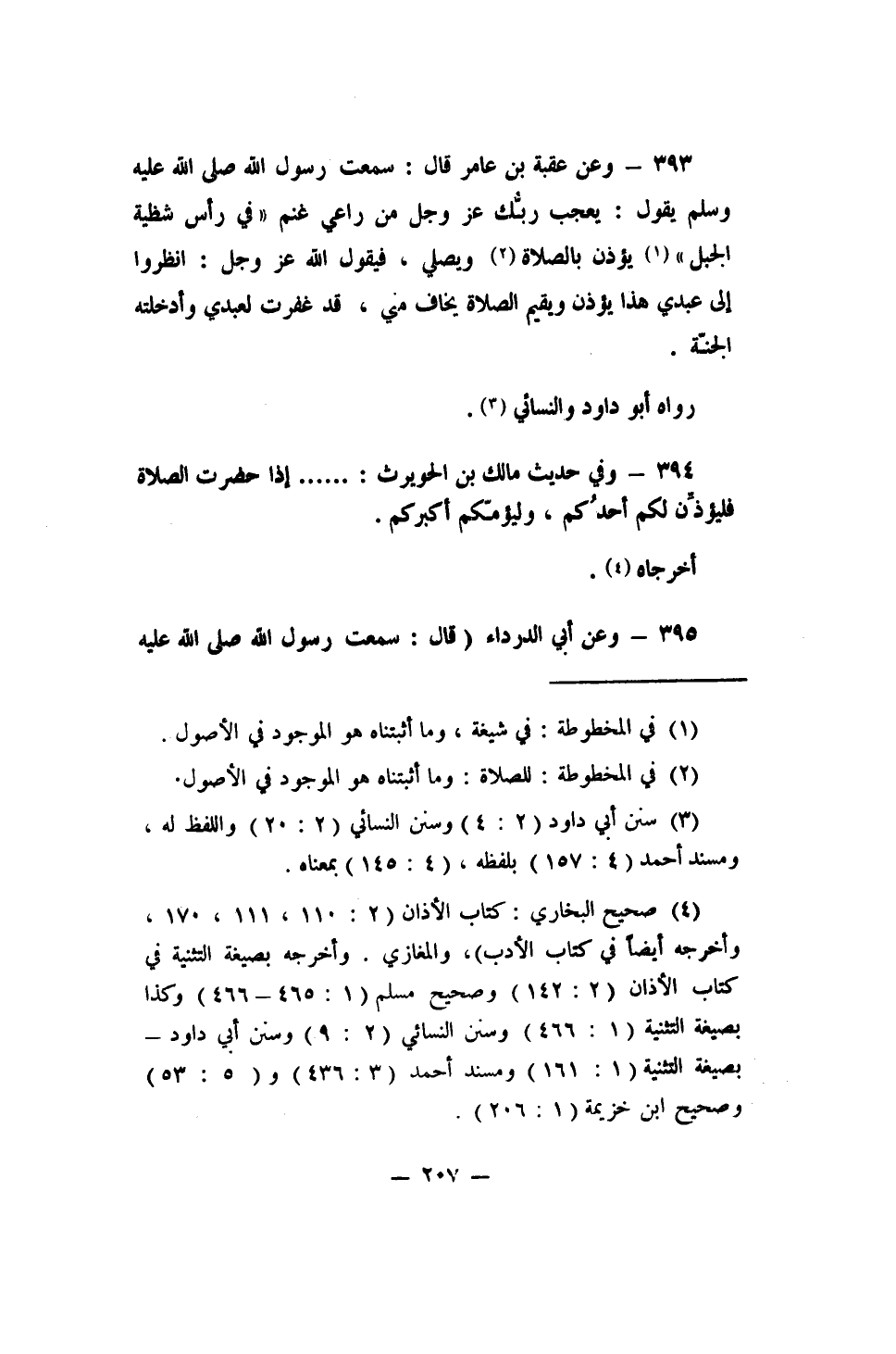 393 - وعن عقبة بن عامر قال: سمعت رسول الله صلى الله عليه وسلم يقول: (يعجب ربُّك عز وجل من راعي غنم " في رأس شظية الجبل 1 " يؤذن بالصلاة 2 ويصلي، فيقول الله عز وجل: انظروا إلى عبدي هذا يؤذن ويقيم الصلاة يخاف مني، قد غفرت لعبدي وأدخلته الجنّة) .