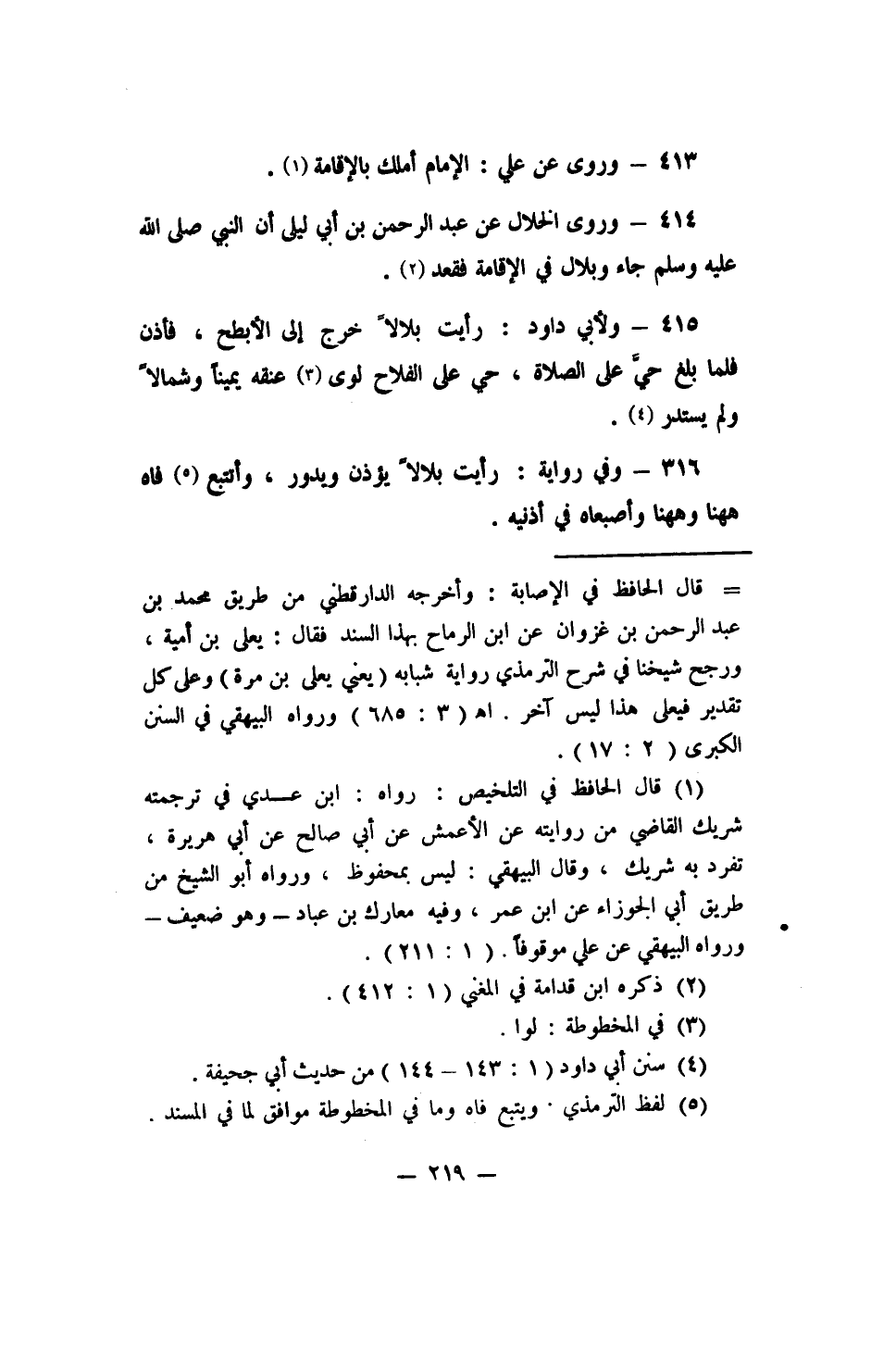 414 - وروى الخلال عن عبد الرحمن بن أبي ليلى (أن النبي صلى الله عليه وسلم جاء وبلال في الإقامة فقعد) 2.